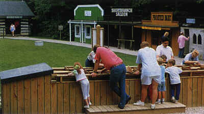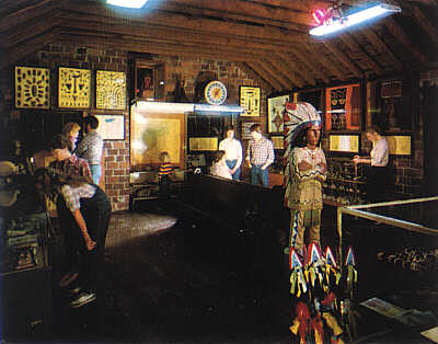 ADVENTUREWhile you are here, you may also want to see "Ohio Frontier Land," a recreation of a Fort, a frontier town named "Liberty City," and "Indian Country." Learn about Frontier Life, see items from the past, and read the humorous epitaphs in the cemetery. You can also go GEM MINING. Select a bag of sandy mining rough, place part of the rough in a screen bottom box, and dip the box in the SLUICE shown above. Watch the gems appear as the sand washes away.EXPLORE INDIAN COUNTRYDuring the HISTORIC Indian period of the 18th century OHIO was part of the Northwest territory, and until about 1795 was considered to be INDIAN COUNTRY. There were two basic Indian groups: the IROQUOIS cultural group, including the WYANDOTS, and the ALGONQUIN cultural group, including the Delaware, Miami and Shawnee nations. INDIAN COUNTRY has recreations of an IROQUOIS LONG HOUSE, Wigwam, and Teepees. HISTORIC plaques by Jim Baker show the ways of the Warriors, Indian life, the famous Indian Chiefs, and the history of the Indians in the OHIO FRONTIER LAND. |