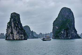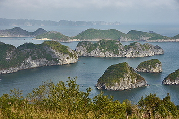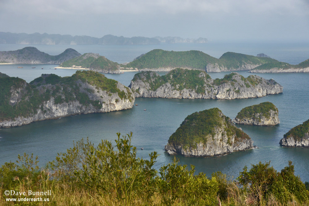 Karst Landforms: Cone KarstA mature karst form common to Southeast Asia is tower or cone karst. Rounded karst hills are typically classed as Fengcong when they cluser together and Fenglin when they occur as isolated cones surrounded by flat plains. |