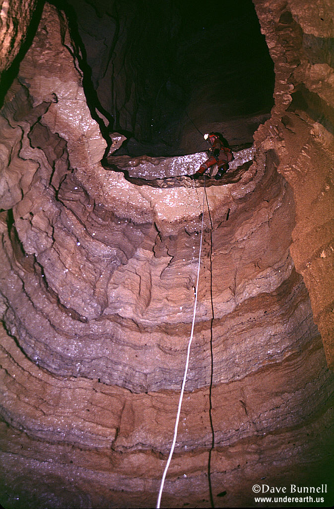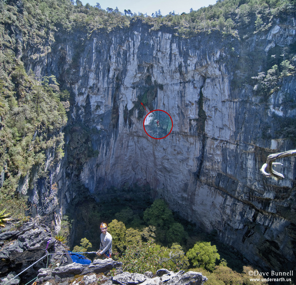 Zoom in to see how huge this pit is - there is a climber on the far side, 650 feet from the camera. The pit is 633 feet deep.
