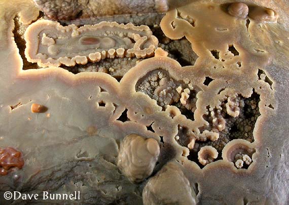 pond streams or shallow pools in caves. They tend to form stairsteps when