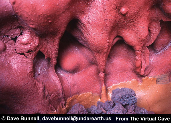 Iron compounds will turn red on exposure to air, and red lavas are often