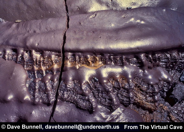 As the accreted lining inside a tube cools, shrinkage occurs and cracks form in the walls and floors. The photo shows such a crack on the floor.