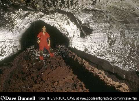 As a stream of lava moves through an existing tube, the sides tend to cool first and create a free-standing, vertical remnant along the edge. Its height is increased by splashing and frothing, and the top is often irregular. The inside edge is typically smooth but may show grooves or flow lines. Often levees are associated with gutters, which form between the levee and the tube wall. |