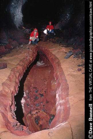 this lava leaves a lining deposit around the edge as evidence of its passing,