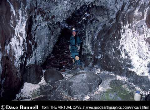 Breakdown may also be moved downflow with the stream of lava before being emplaced, especially if its specific gravity is less than the molten lava on which it floats. As it moves, it may roll along and accumulate molten lava, becoming a lava ball. |